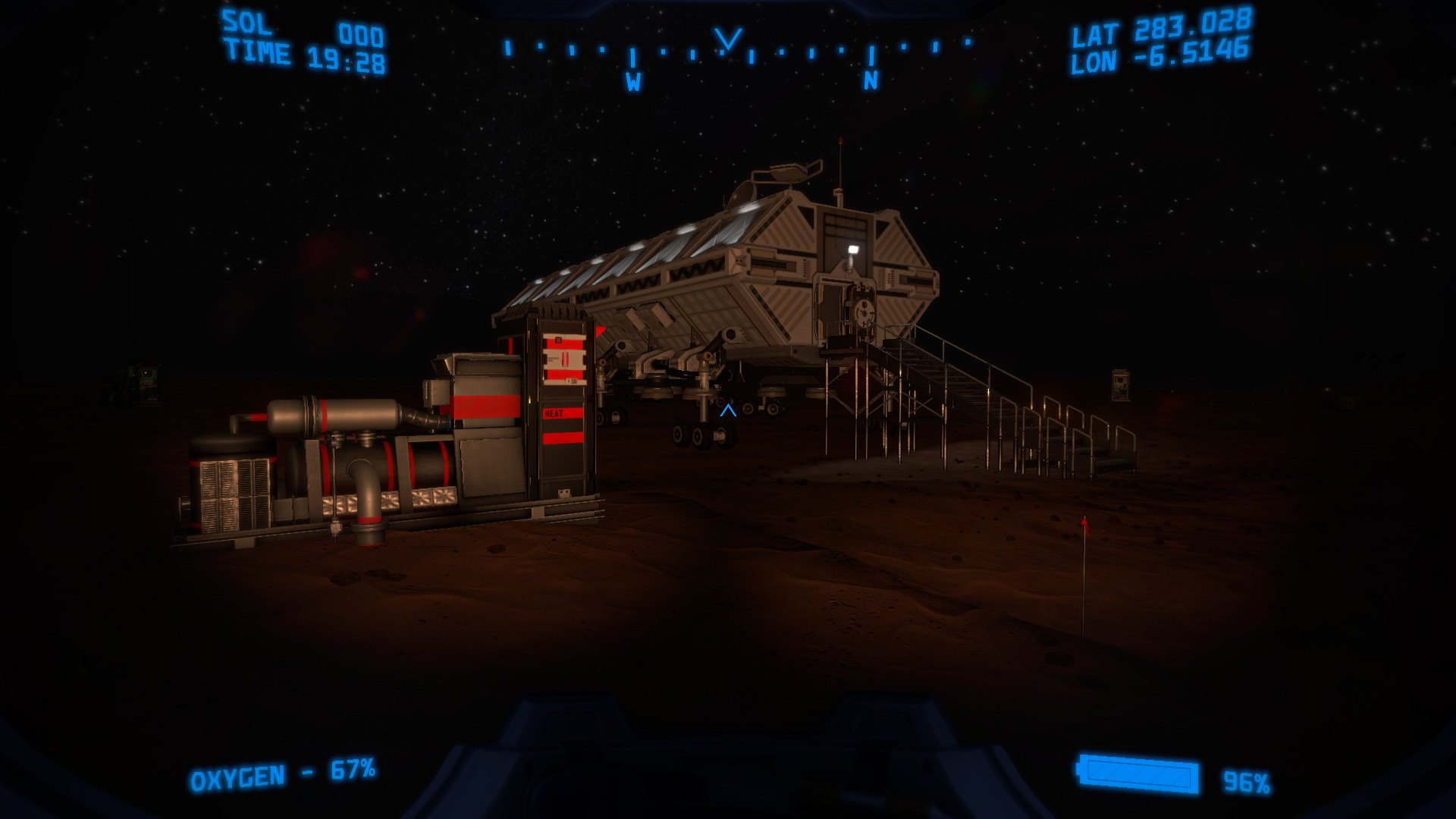 Interact with the various astronaut technologies through your dependable datapad. You will need to manage inventories, salvage and craft supplies, and repair vital life support systems in order to survive the desolate landscapes of Mars. Find and drive rovers to help manage multiple habitats.