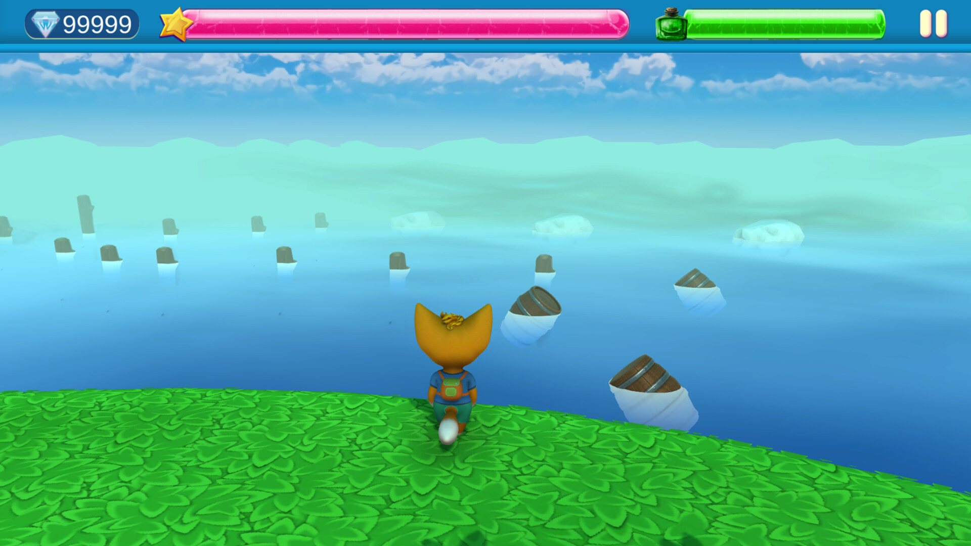 Obby is a combination of obstacle and jumping puzzle. The aim is to find the right path and, above all, to master it. Kitty has to make it through different levels. Sometimes you're above the clouds, sometimes in a dark dungeon or trying to cross a lake.