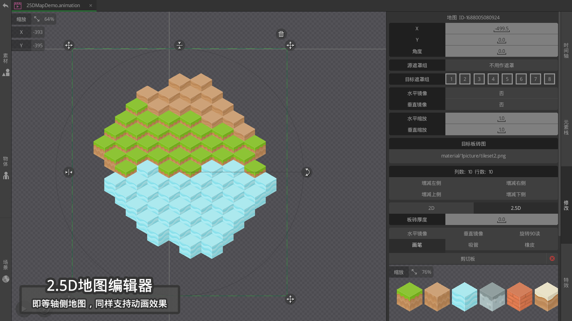 -2D地图编辑器+2.5D地图(等轴侧动画)编辑器,地图Tile支持动画效果