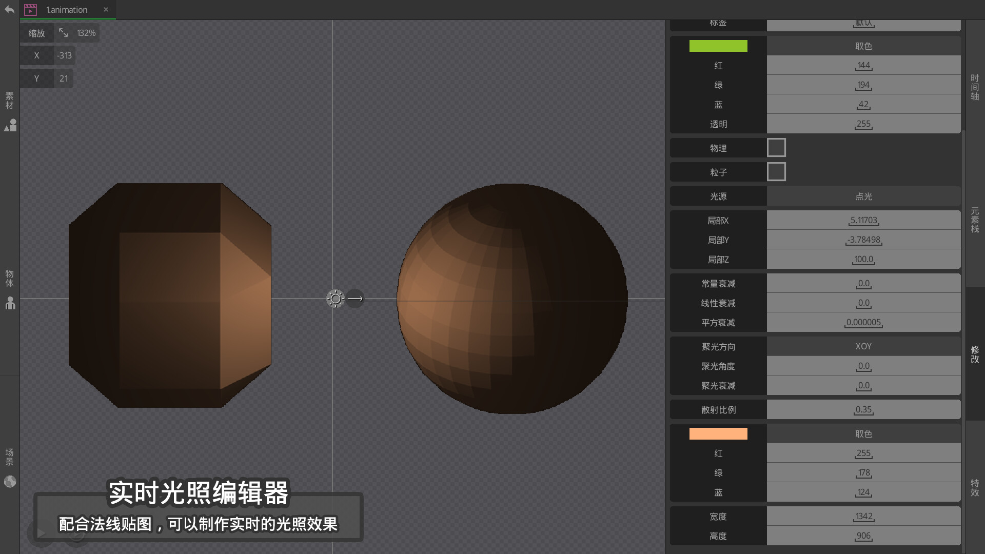 -光照编辑器,结合内置的法线贴图编辑器,可以制作非常炫酷的实时光照效果
