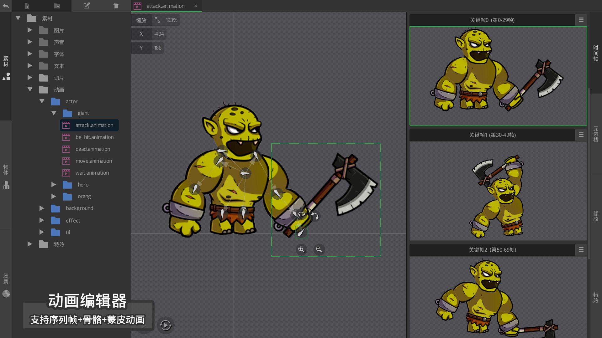 -内置逐帧动画编辑器、骨骼动画编辑器及蒙皮动画编辑器