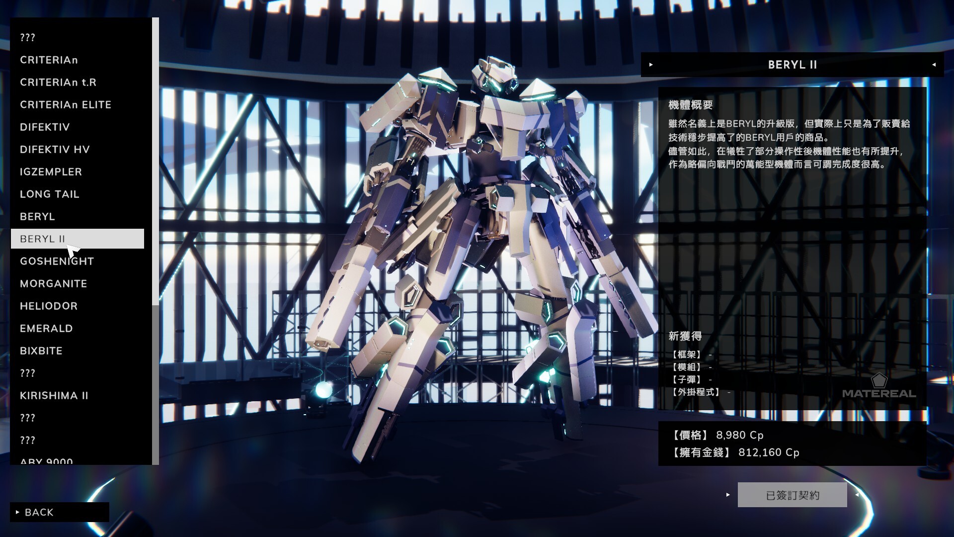 在景觀模式中,你從一開始就可以使用所有部件。不需要在意性能限制,只需要如自己所願地設計機體即可。