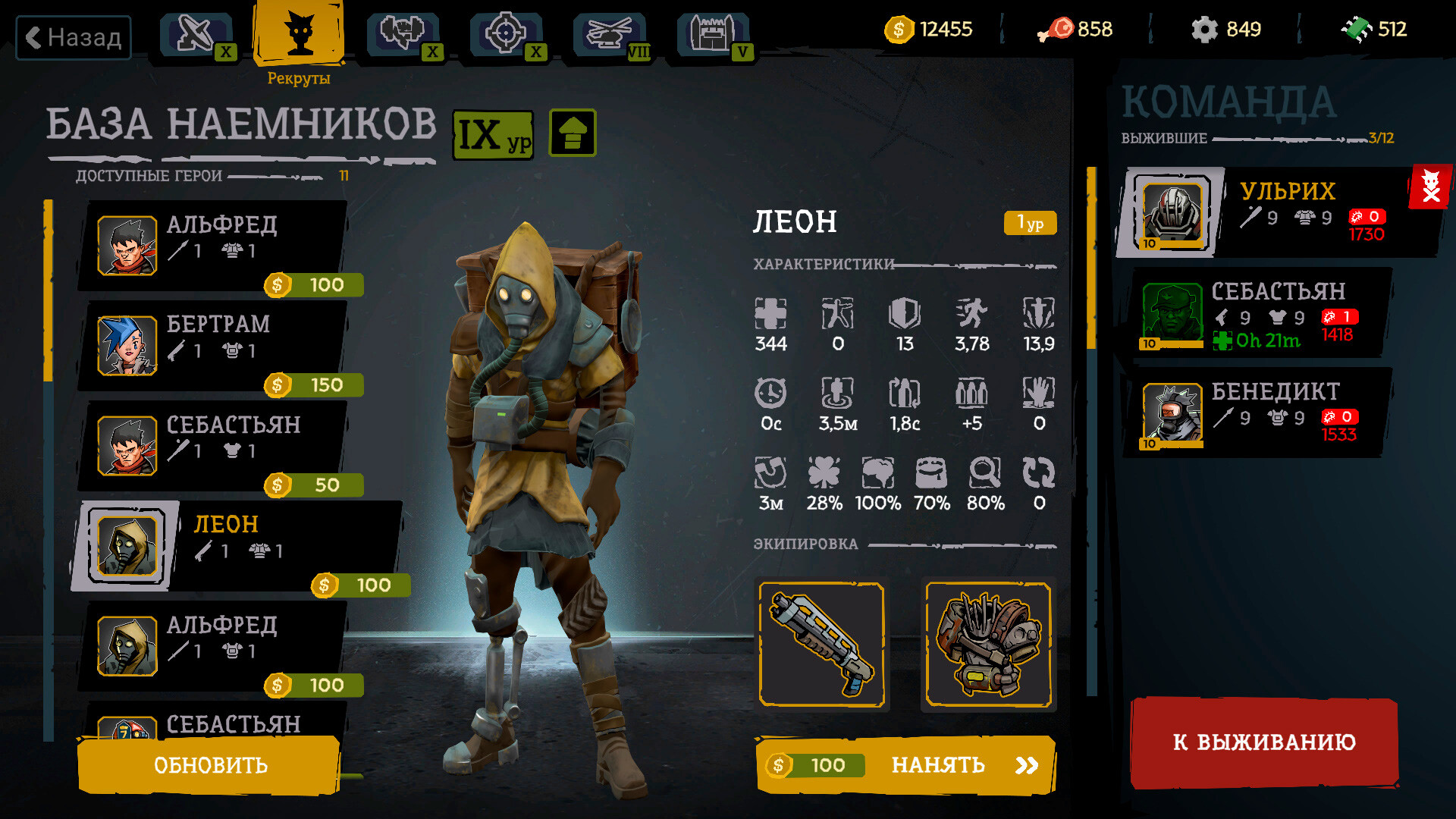 Во время вылазок наемники контактируют с вирусом, и это не проходит бесследно для организма. Чем выше вирусная нагрузка, тем больше шанс подхватить мутацию и хуже состояние наемника. Мутации могут иметь как положительные, так и отрицательные эффекты. Экспериментируй, чтобы создать самого живучего бойца!