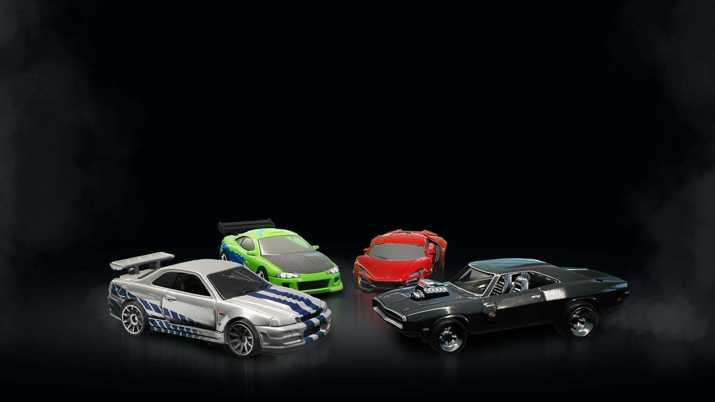 • 4 Vehicles: Nissan Skyline GT-R R34, 1970 Dodge Charger R/T, 95 Mitsubishi Eclipse, W Motors Lykan HyperSport;