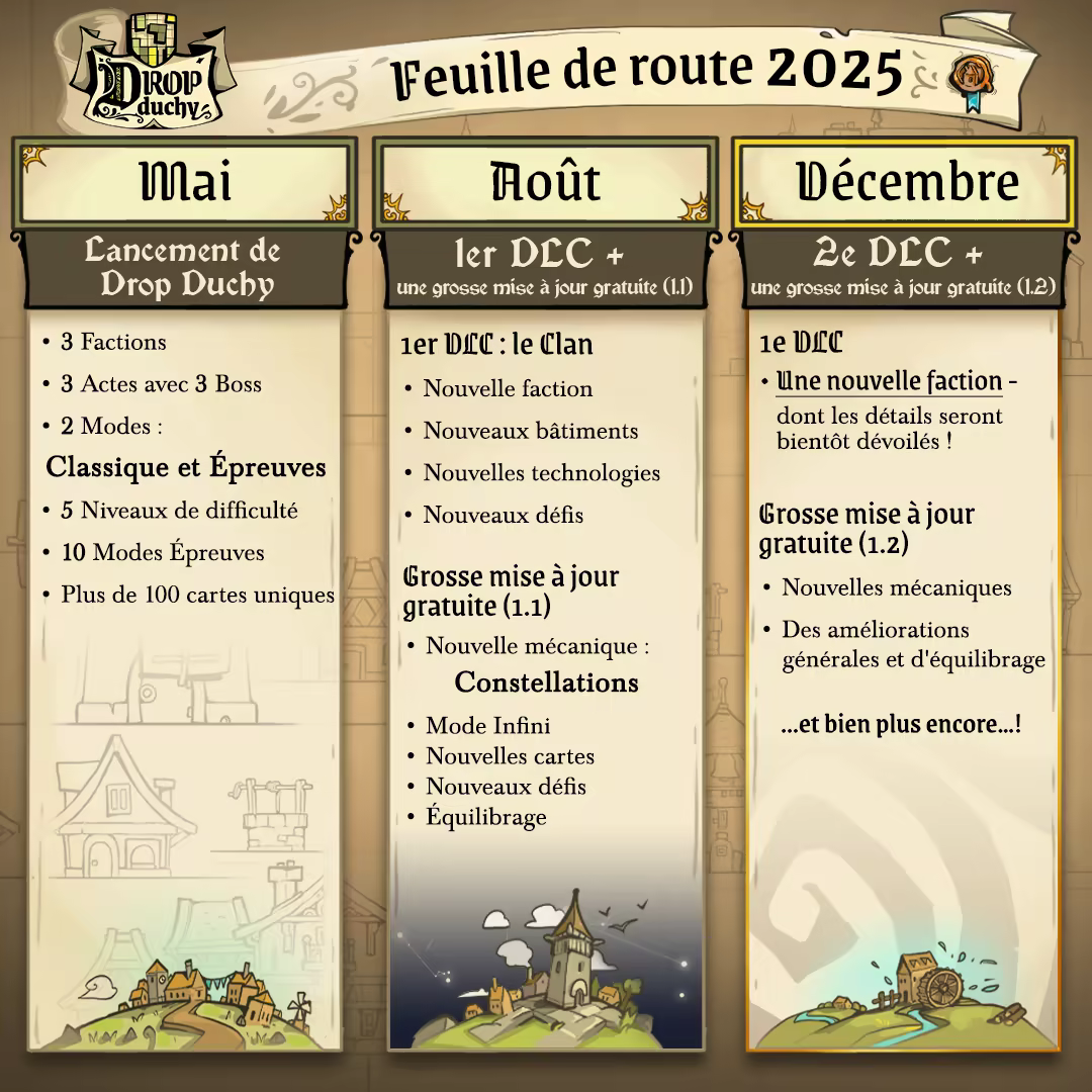 Drop Duchy inclut une solide meta progression dotée de plus de 100 missions spécifiques. Gravissez les échelons et déverrouillez tout un éventail de bonus tels que des ressources, des cartes ou des points de vie additionnels !