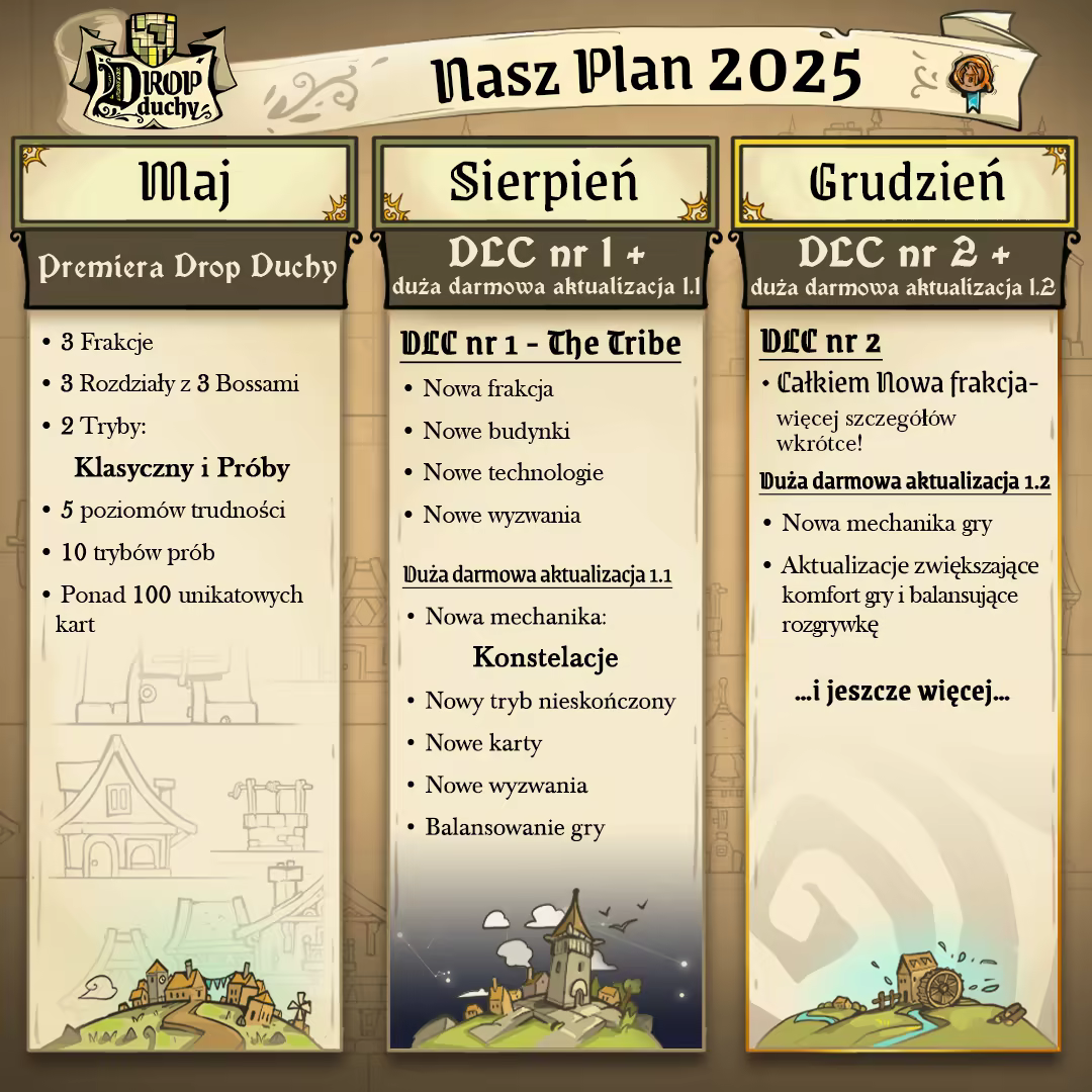 Połączenie budowania talii, układanki i gry typu rogue-lite, Drop Duchy oferuje nowy rodzaj rozgrywki stworzony specjalnie dla lubiących układanie klocków taktyków. Optymalizacja jest kluczowa by zbierać cenne zasoby, chronić swój zamek i budować armię.
