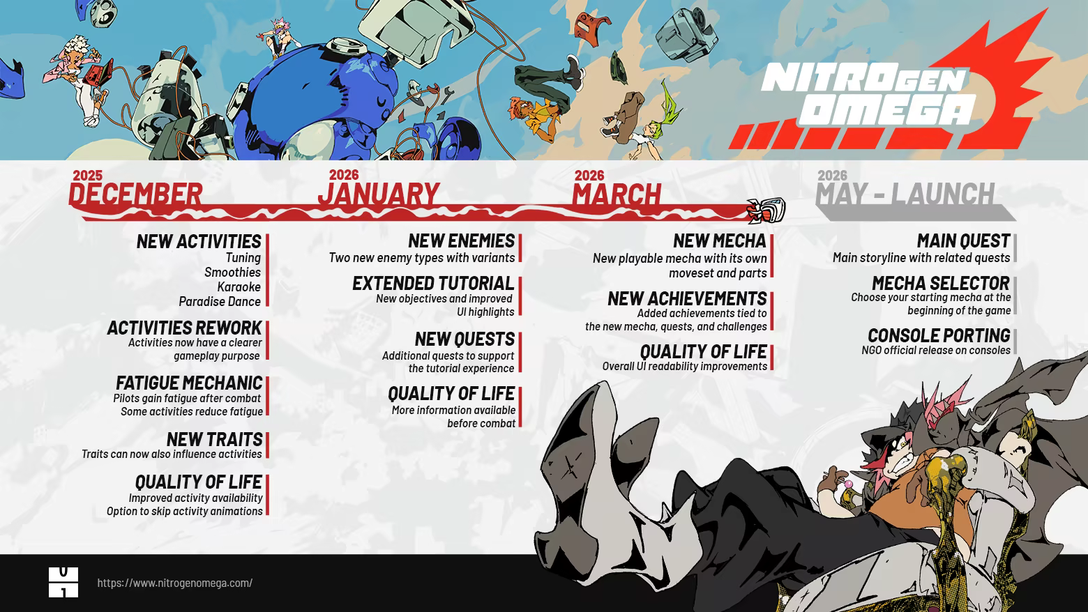 “First and foremost, we love developing games alongside the community. We love interacting with players, talking with them, and shaping the game based on their feedback. NITRO GEN OMEGA is a sandbox, systems-driven game, which we think will benefit greatly from the feedback of players in shaping its future.”