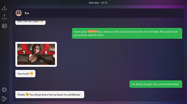 This is a story-centric game that is played in a text application, where the player gets to talk via texts with Eva about your day, work, affairs, and maybe exchange some nudes.
