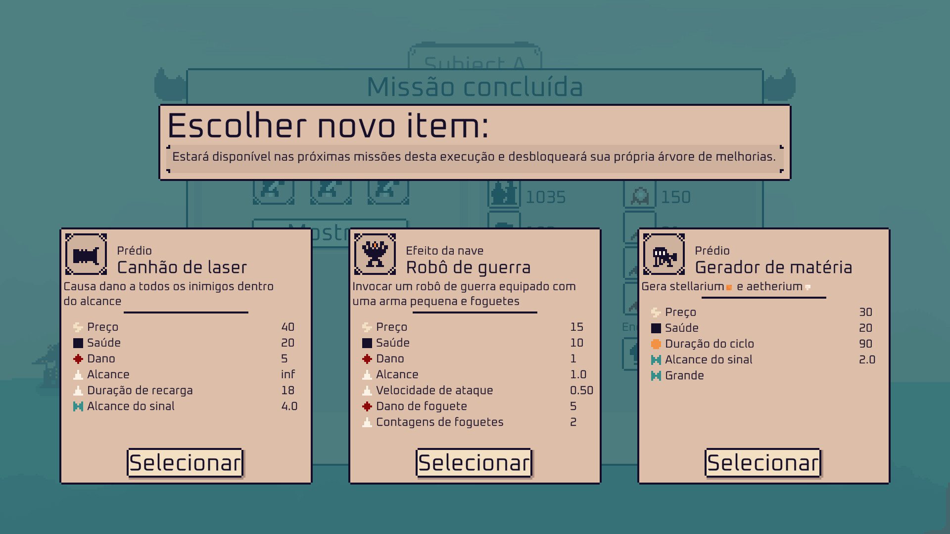 • Escolha a próxima missão: procure novas oportunidades, minere mais recursos, descubra artefatos raros, defenda a posição ou prepare-se para lutar contra o chefe!