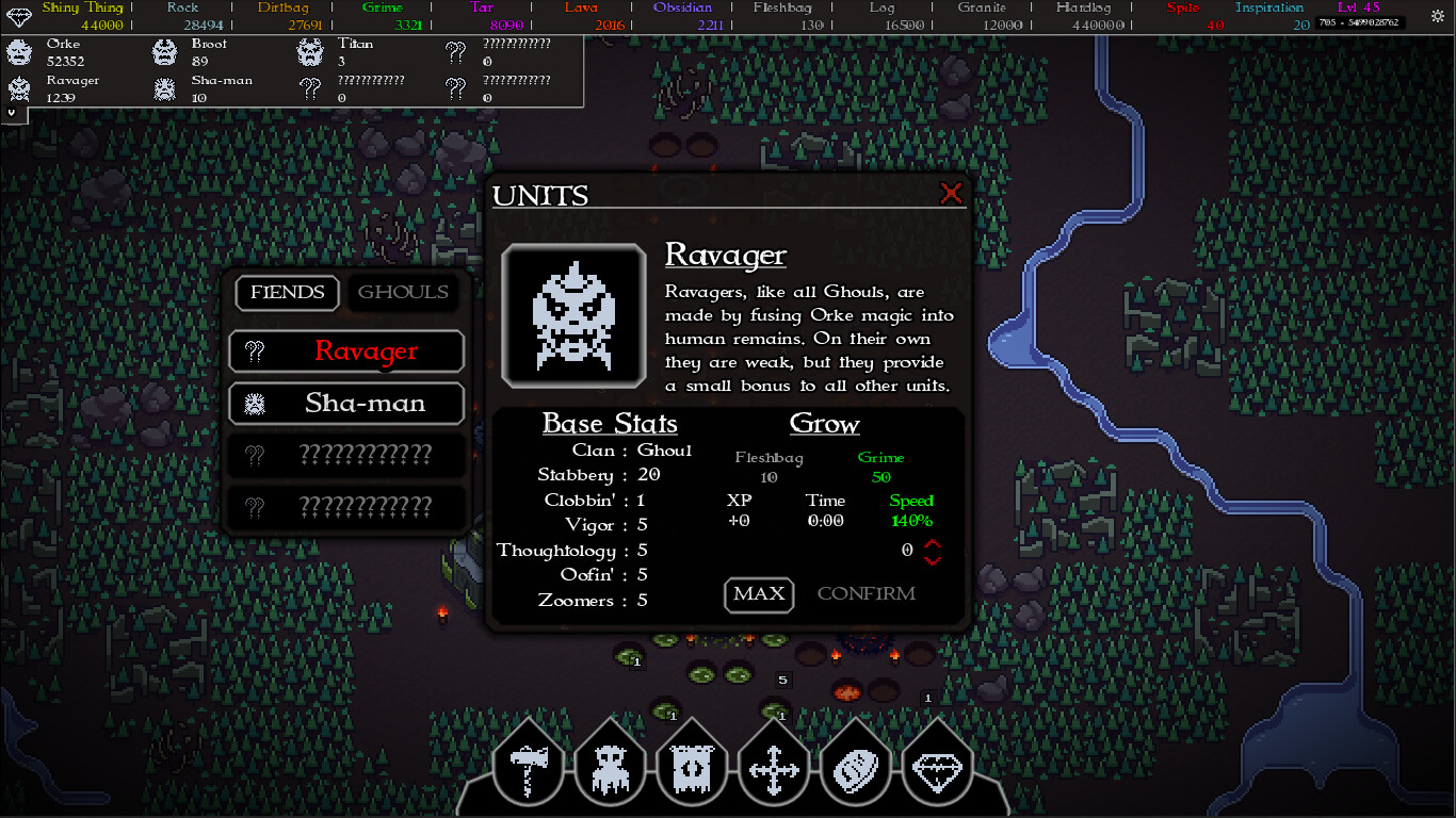 In this idle strategy game, you are an Orke Chief that has been banished from your home. Rebuild your tribe, slaughter all Humans and Orkes in your path, discover ancient magics, and claim your rightful spot on the throne...before the spirits of your fallen enemies overwhelm you.