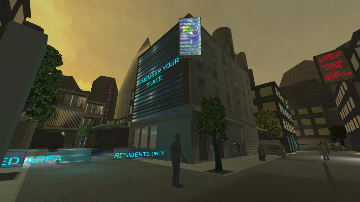 Set in the fictitious city of Abbotsford, California in the year 2038, the world the player experiences is the result of four years of shrouded meddling by the Illuminated Brethren - the environment is cold and unforgiving, the people are drab and demoralized, narcotics and gangs are rife, and military police walk the streets. How has it come to this?