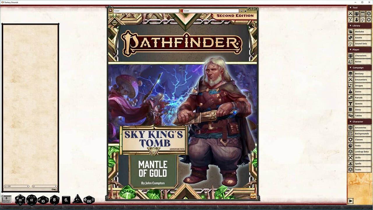 Requires: The free Fantasy Grounds virtual tabletop (VTT) software and the included Pathfinder 2.0 ruleset.