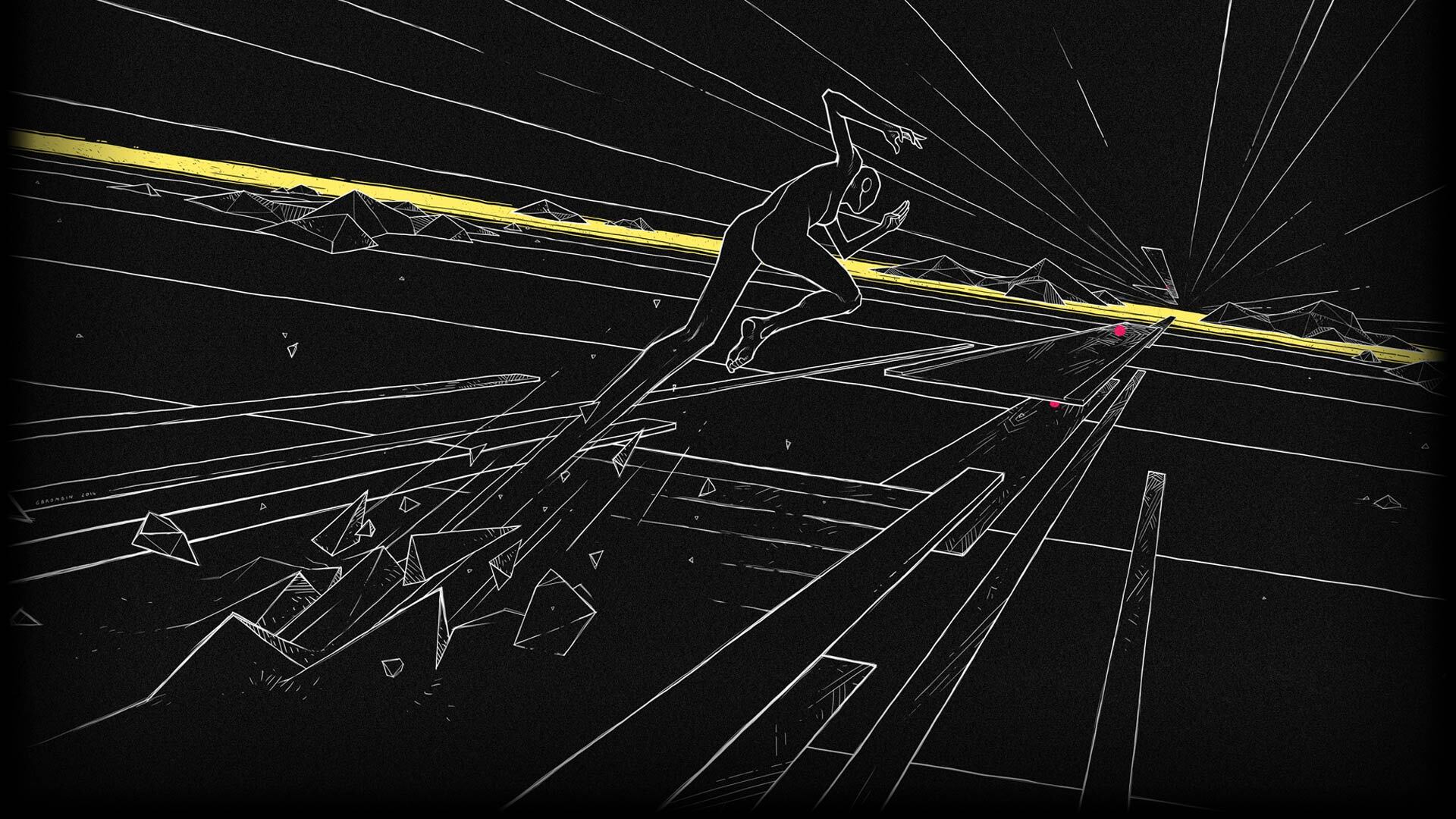 Richtiges Timing ist der Schlüssel, Entdecken und exaktes Bereisen der Umgebung das Ziel. Diese Umgebung ist eine abstrakt - vor allem duoton- skizzierte Welt, deren Aussehen an geometrische Abstraktionen und die 3D Low-Poly Ära erinnert.