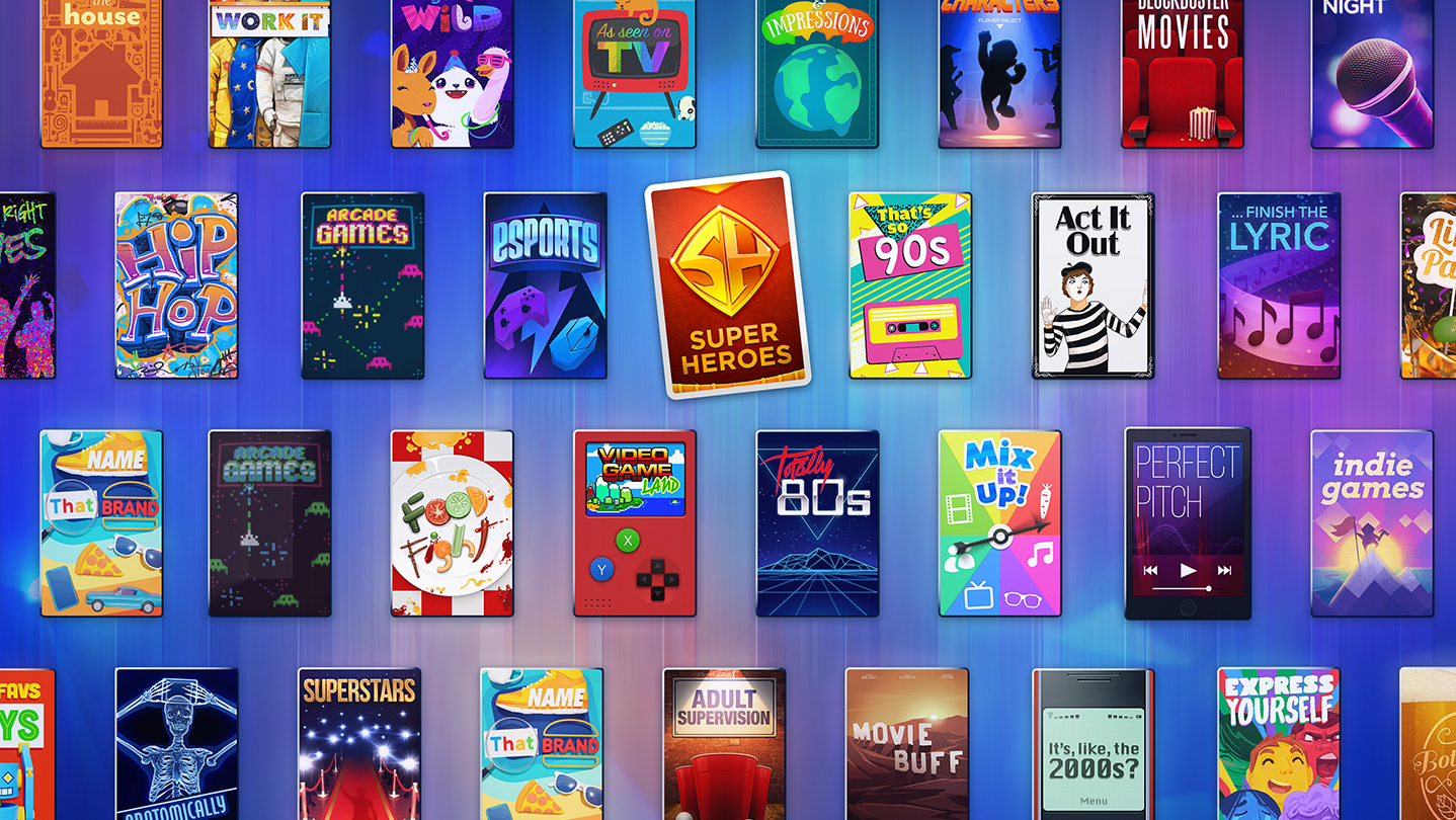 Há mais de 90 baralhos que incluem cultura pop, cinema, conhecimentos gerais, celebridades, animais e várias outras coisas.