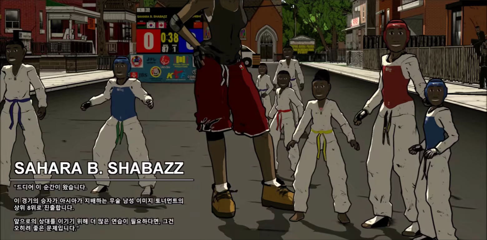 사하라 B. 샤바즈와 함께 태권도가 그녀의 혈관 속에서 흐르고 있는 그 한국 남자의 희생을 기리며 이 무술 대회에서 우승하세요.
