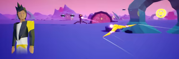 • On-Rails Action - Fly through colorful, low-poly levels and defeat as many enemies as you can.