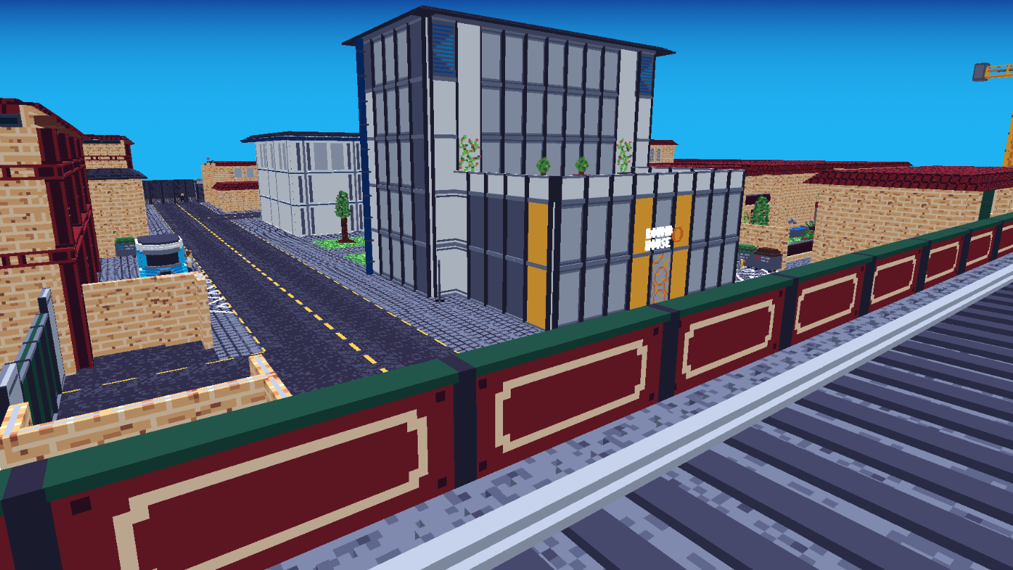• Discover a meticulously crafted neighbourhood in a 3D voxel style.
