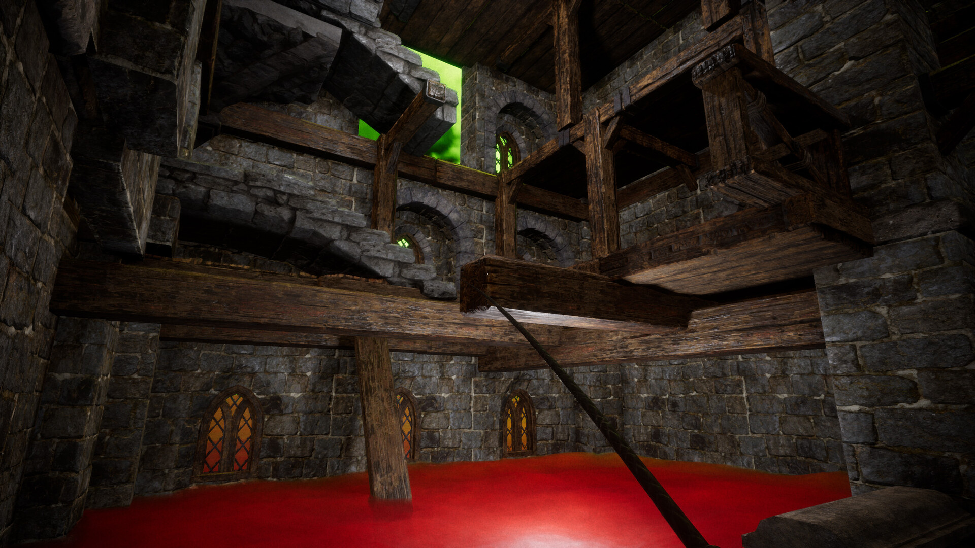 • Climb a castle to the moon, always being on the run from the impending arrival of the sea of blood coming from below