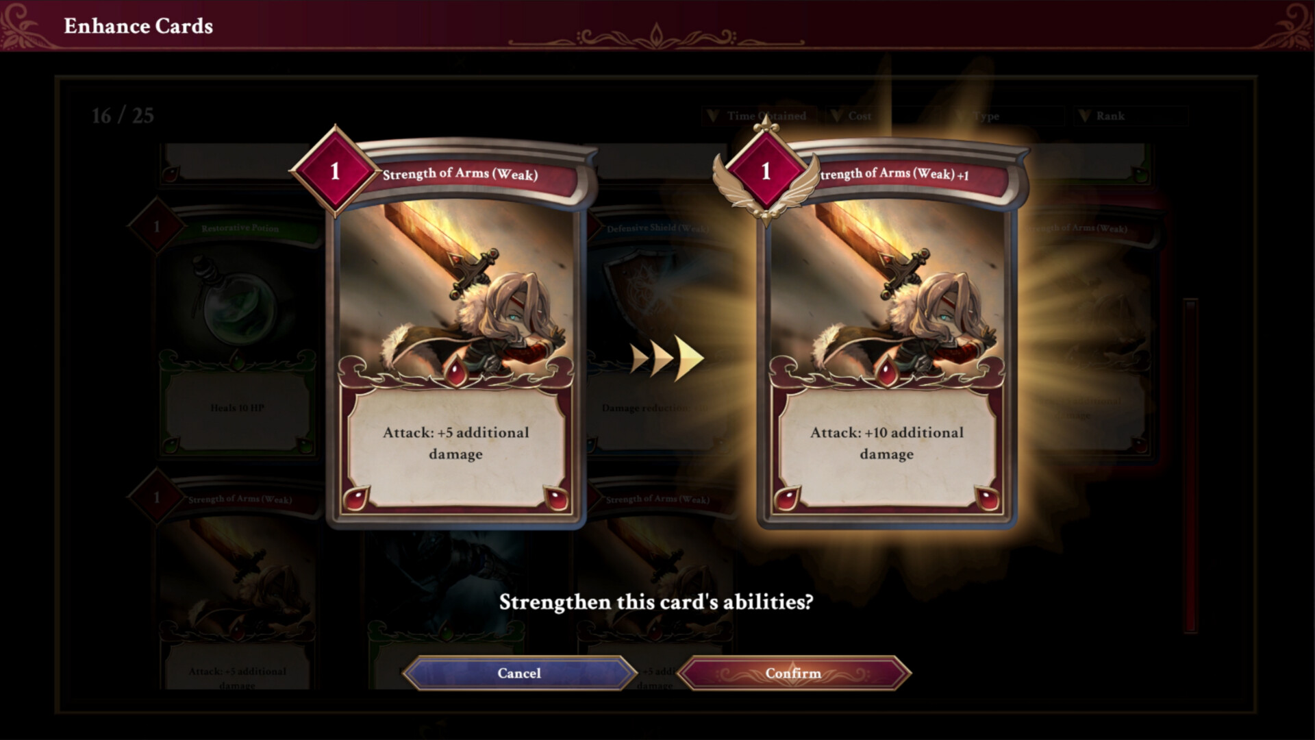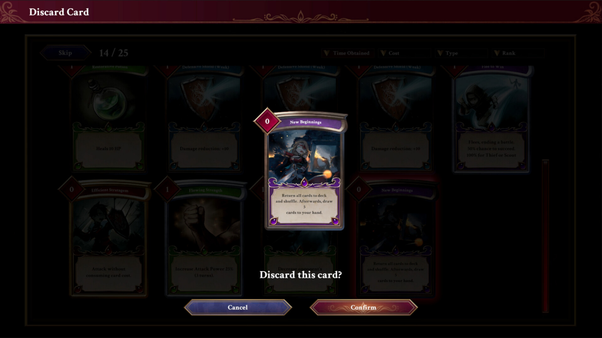 This game combines roguelike-style deckbuilding with SRPGs to create an all-new experience! Follow Vel as she leads the Clausewitz Battalion into battle against Fahftania and the Hellmuth Brigade. Collect 100 different cards to build the strongest deck and fight enemies on a map shrouded in mist.