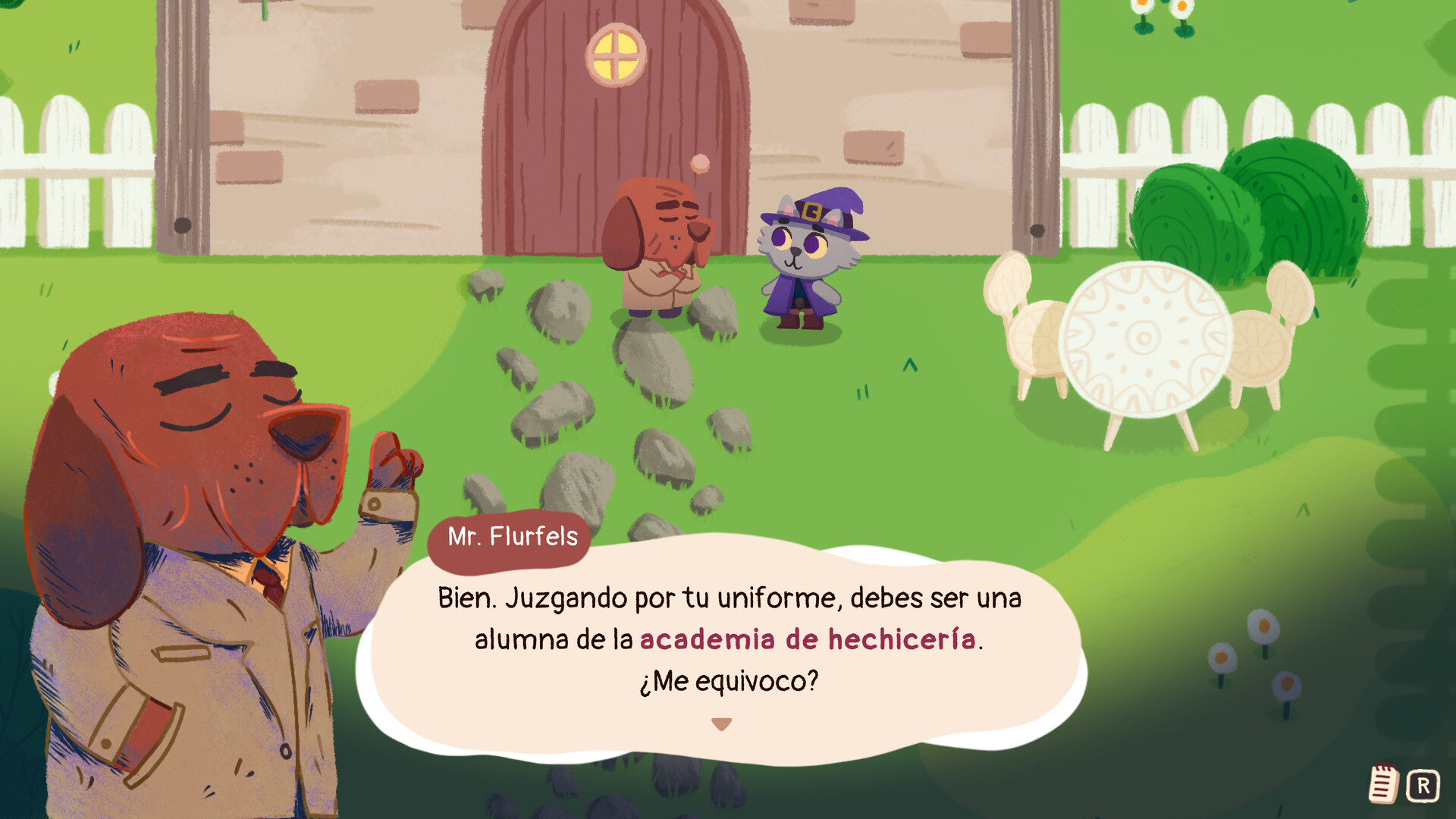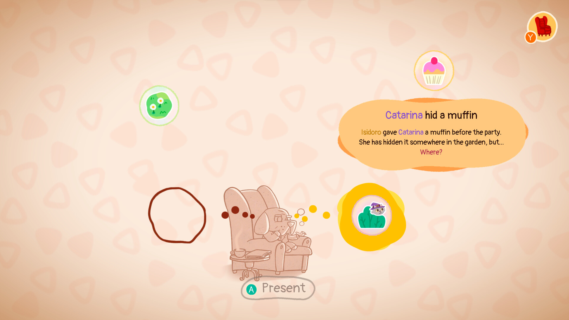 In Just in Crime you play Mr. Flurfels McGoodboy, a clever detective who in his many (dog) years has solved countless cases. But when at a birthday party one of the guests eats the whole cake on the sly, he will be forced to collaborate with Catarina; an apprentice sorceress who will allow him to travel back in time and check what everyone present was doing during the crime.