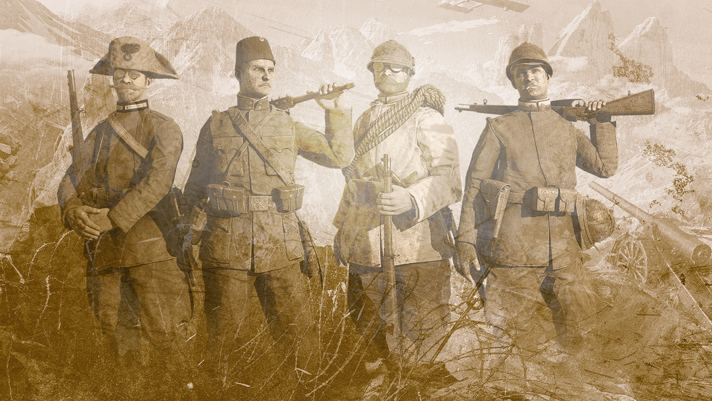 The ‘Veteran Units’ pack contains battle-scarred uniforms for each class. The Italians get the hardened Sardinian "Sassari" uniforms, while the Austro-Hungarians get a Hungarian Honved uniform alongside veteran trench fighters including the Sturmtruppe Hauptmann. This pack comes with five iconic mustaches and four facial items.
