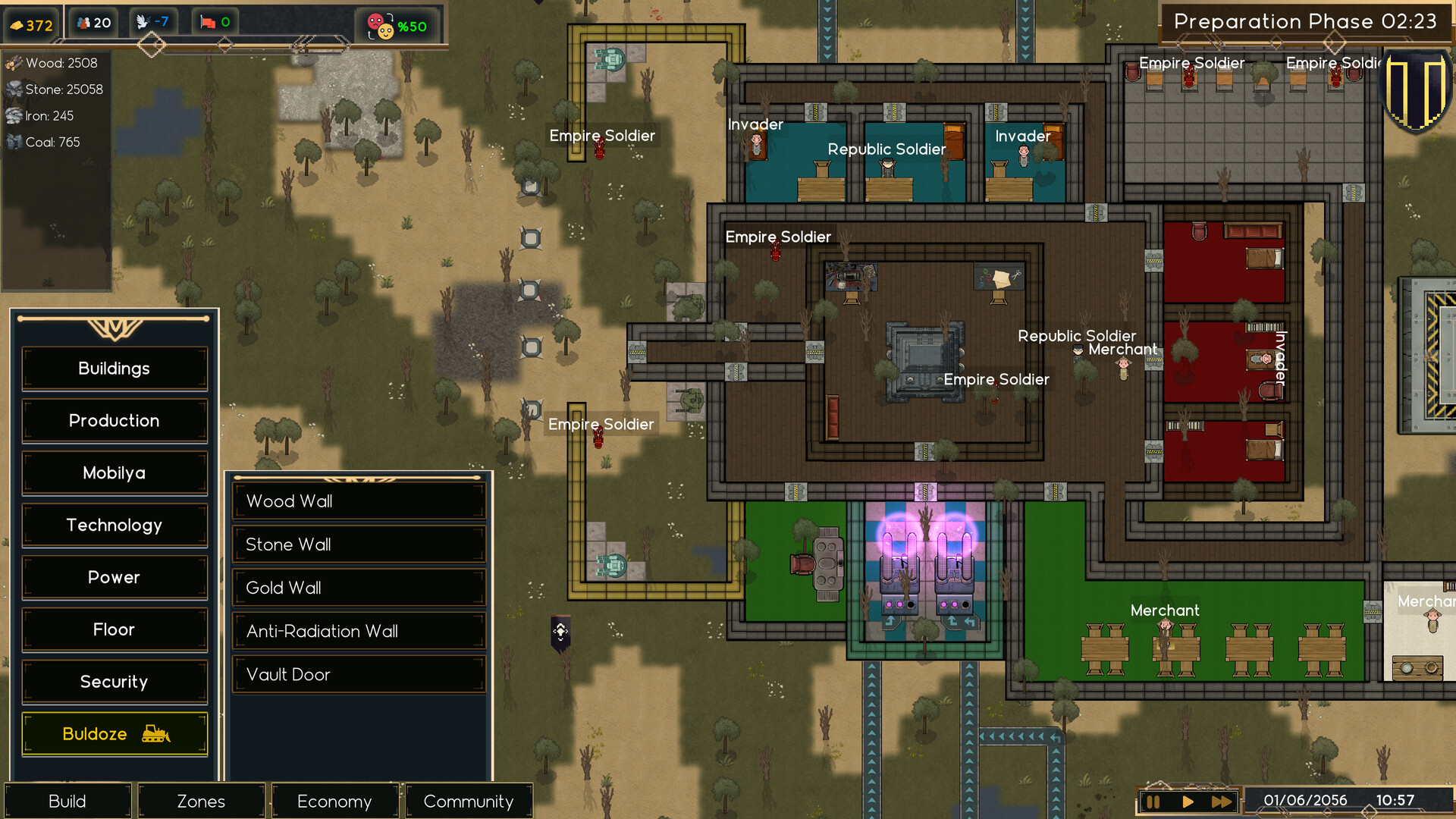 • Build and develop your base from wood, stone, gold, anti-radiation metal and more.