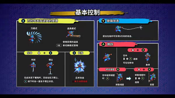 本作在实现16Bit复古画面风格的同时,借助了新技术来呈现画面的精致感和丰富度。两位忍者主角飒(Hayate)与枫(Kaede)不仅以全新造型亮相,所有关卡场景及敌人也都进行了重新绘制。相信这些经过精心刻画后的人物和场景,将带给大家眼前一亮的视觉感受。