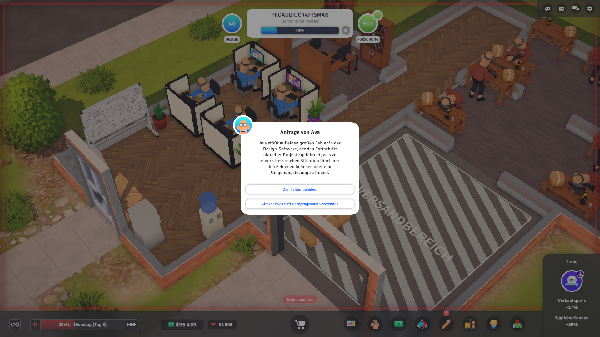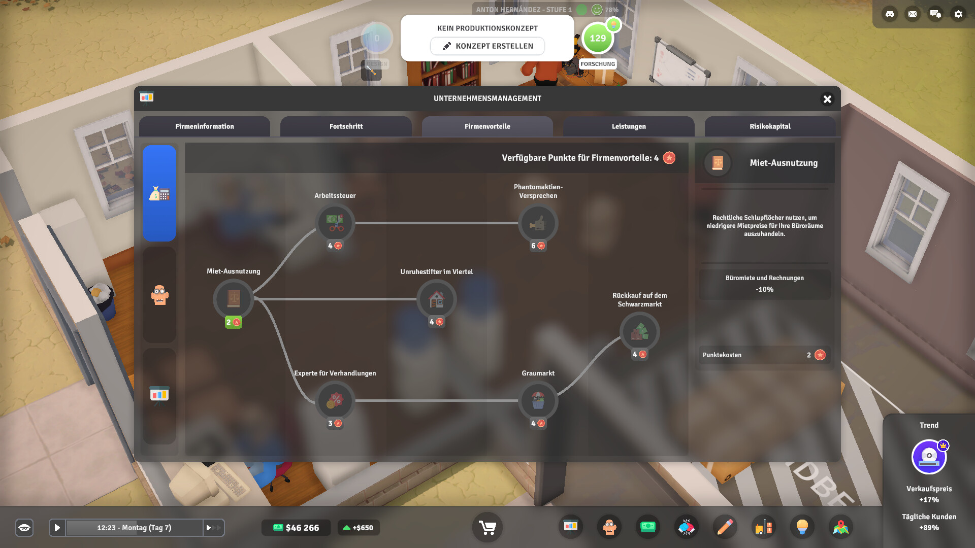 Verwalte dein Produktunternehmen! Entwerfe Konzepte und verkaufe Produkte auf dem Markt! Vermeide den Bankrott und steige an die Spitze, indem du die besten Konzepte, Preisstrategien entwickelst und optimales Management anwendest. Besiege all diese verdammten Konkurrenten!