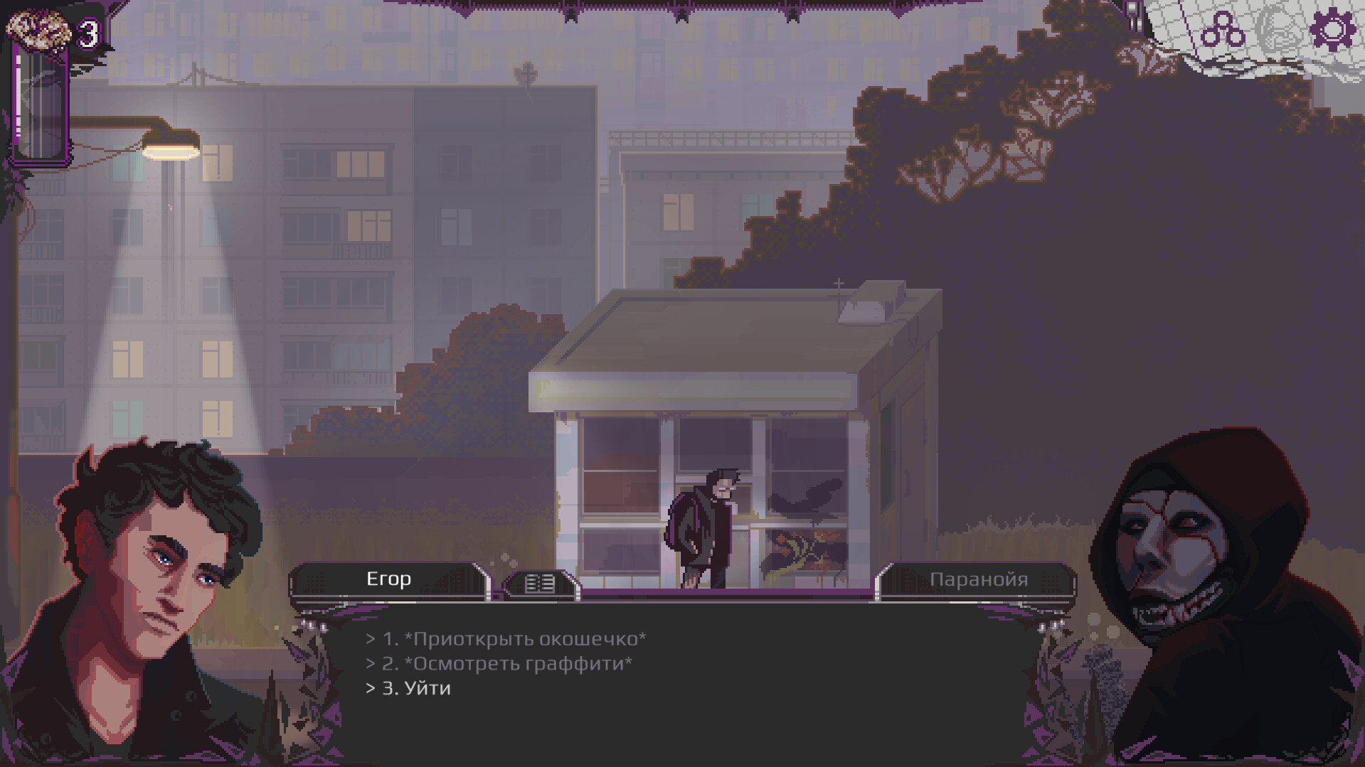 Сайд-скролл адвенчура в духе постнулевых с пошаговой боевкой и RPG элементами, вдохновленная Disco Elysium и классическими JRPG.