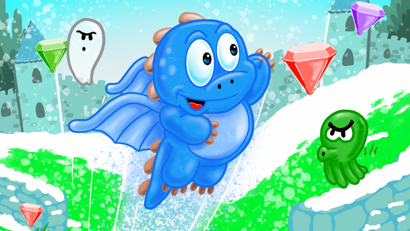 Collect all of the gem pieces to progress to the next level. Avoid touching the nasties. Collect the snowflake power up to freeze enemies in place (you are an ice dragon, after all!).