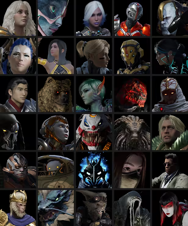 They come from 30 characters, humans, robots, beasts, monsters and more.