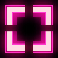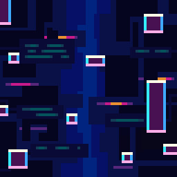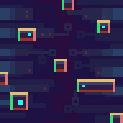 • Vibrant neon pixel art aesthetic