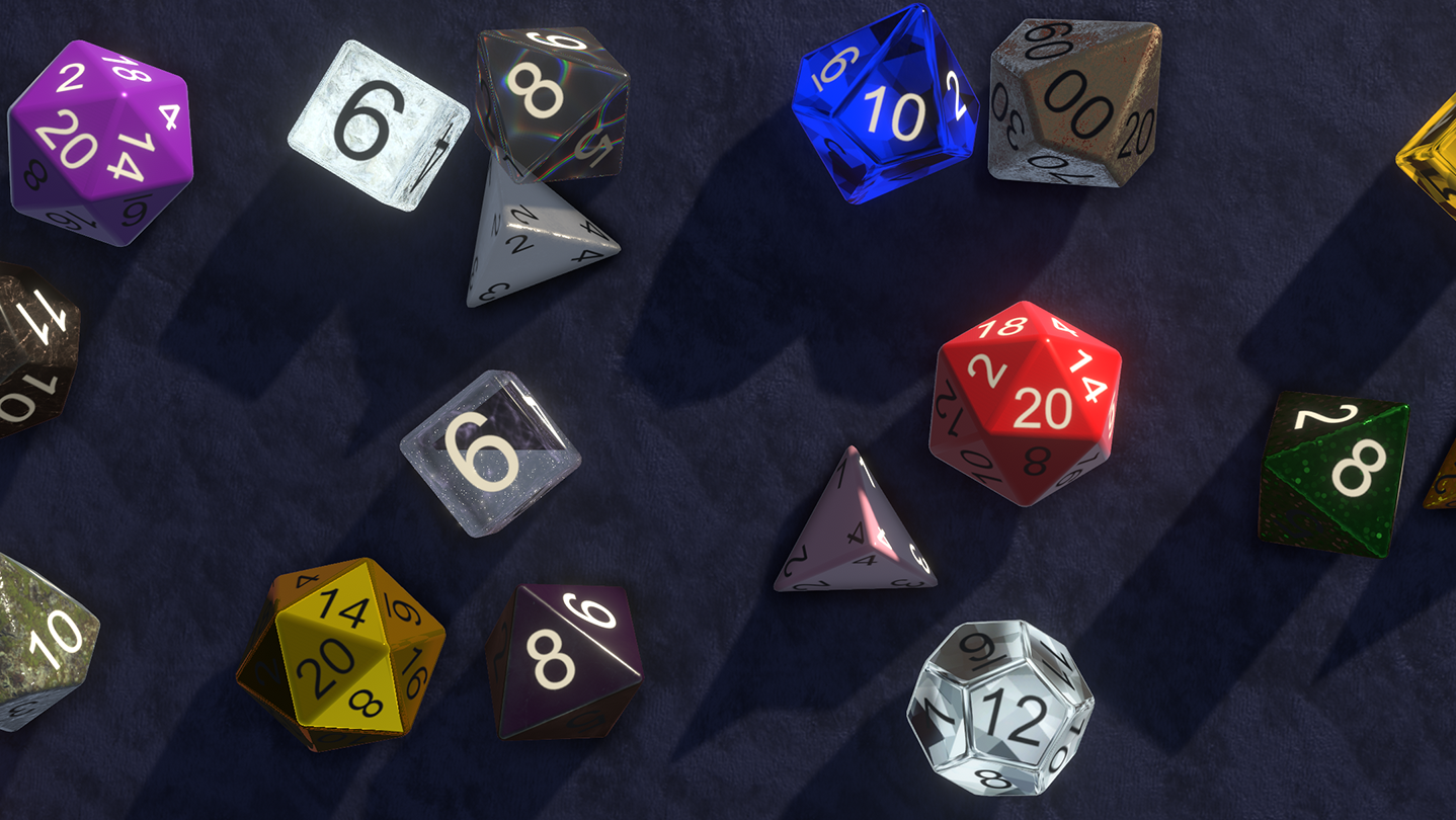 60+ Dice Sets. A vast array of dice sets from colored plastic to polished obsidian to solid gold. Place and roll unlimited copies of dice you own. Four dice sets are included for free, others can be purchased for significantly less than dice sets in real life. Be a dice goblin on the cheap!