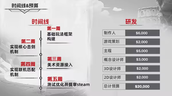我们将从 9 月中旬开始开发该游戏的抢先体验版本,并预计于 5 周后完成开发。然后我们将再花费 1 周的时间,来优化和解决游戏中的任何bug。我们计划有 7 名开发人员将参与该项目。