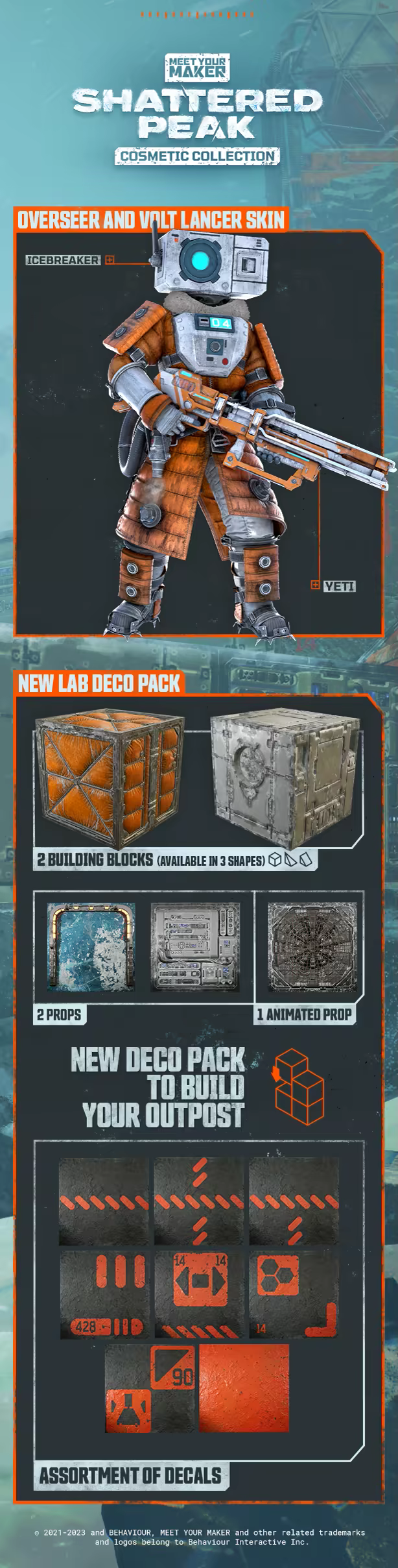 Nights are long, resources are scarce, and a bitter cold chills to the bone. Here only the ruthless survive. Meet Your Maker’s Sector 2 Cosmetic Collection is inspired by the bleeding-edge tech created to survive the Arctic wasteland's frigid extremes.