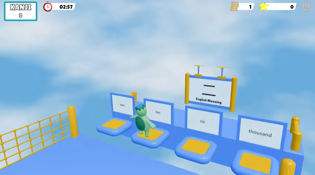 The path ahead isn't always clear – unlock your way forward by deciphering Kanji characters displayed on each platform. Match the character's meaning or reading to progress, and watch as the sky bridges form before your eyes.