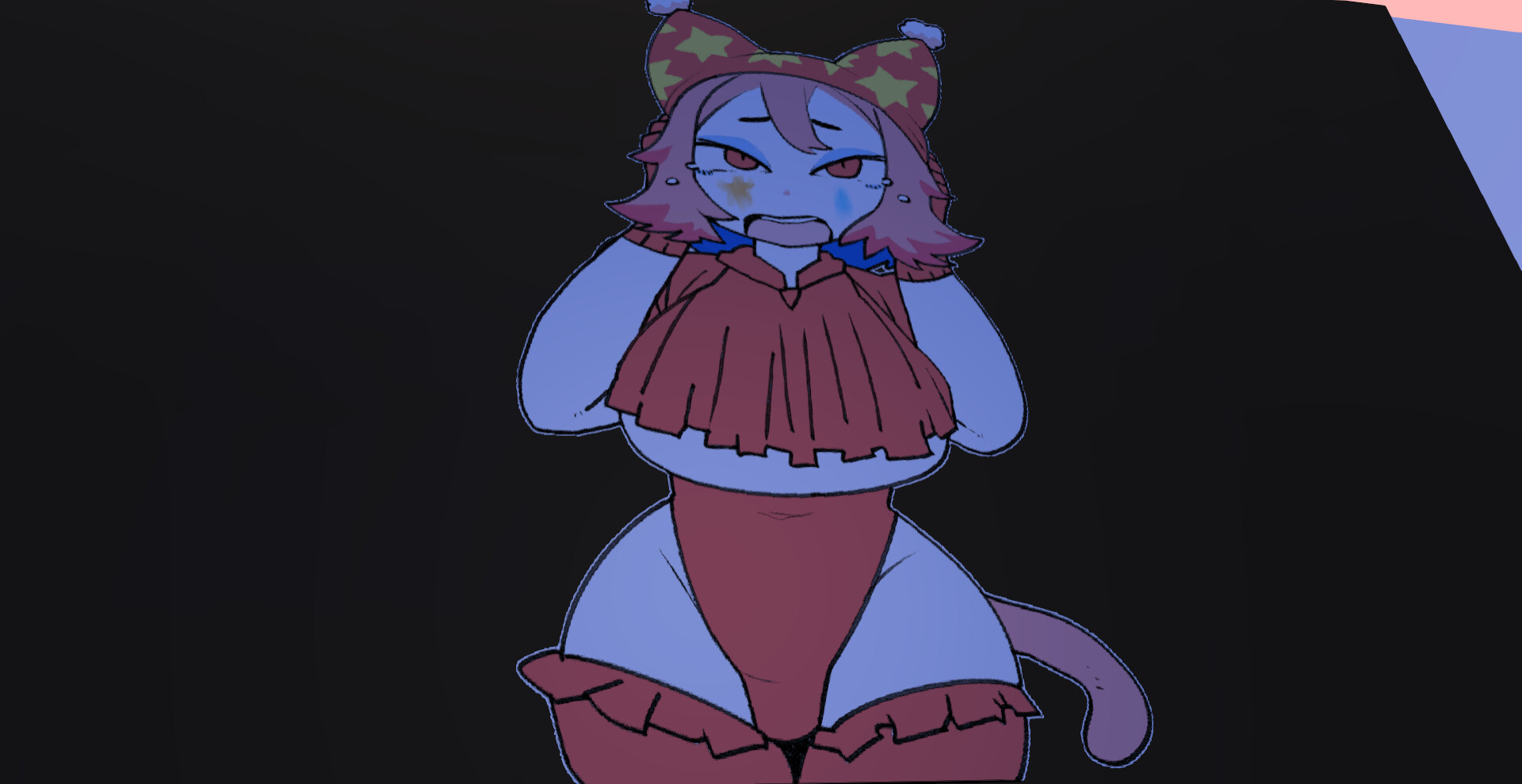 On the monitor in front of you... the person who set this up is surprised and flustered.