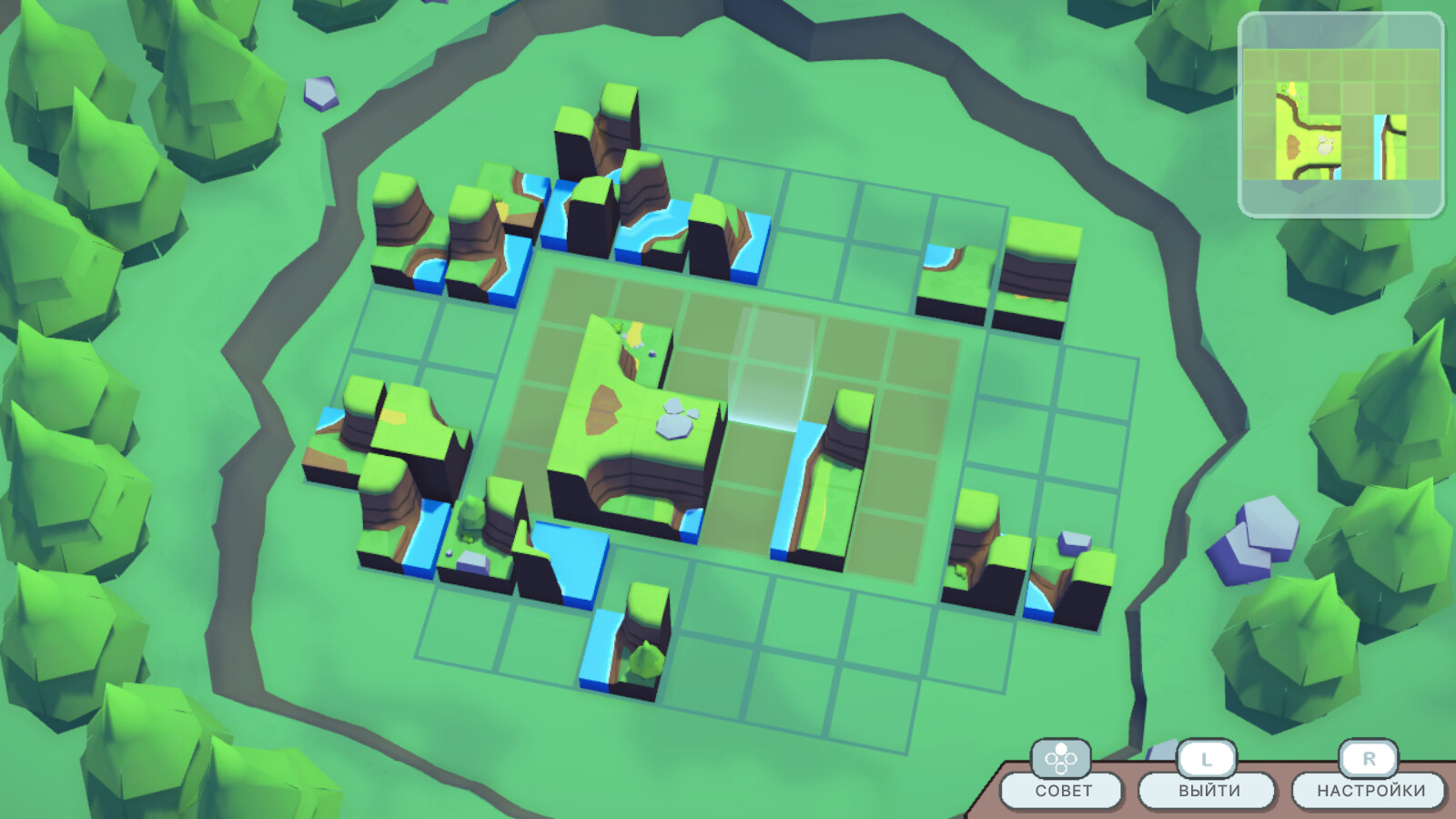 Расслабляющая однопользовательская 3D-головоломка с процедурно генерируемыми головоломками, где вы соединяете кусочки, чтобы составить красивый пейзаж.