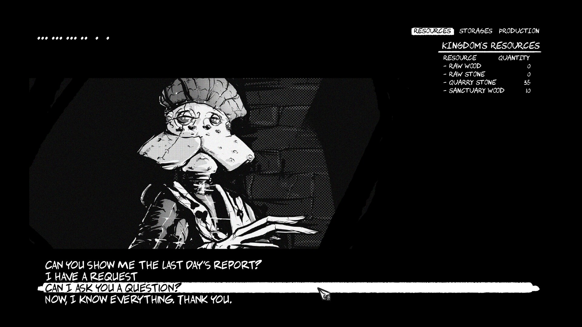 Your day-to-day involves talking with advisors and inhabitants during "auditions." These conversations shape your reign. It's not just your kingdom you have to manage, but also your own health and psyche. A stressed-out king rules no one well.