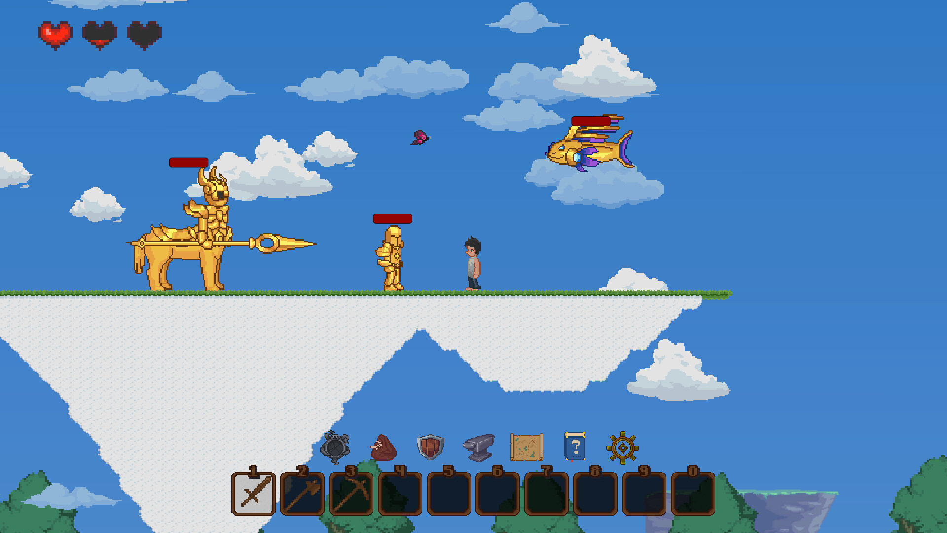 Exploration: Currently includes villages, forests, dungeons, oceans and other landforms.