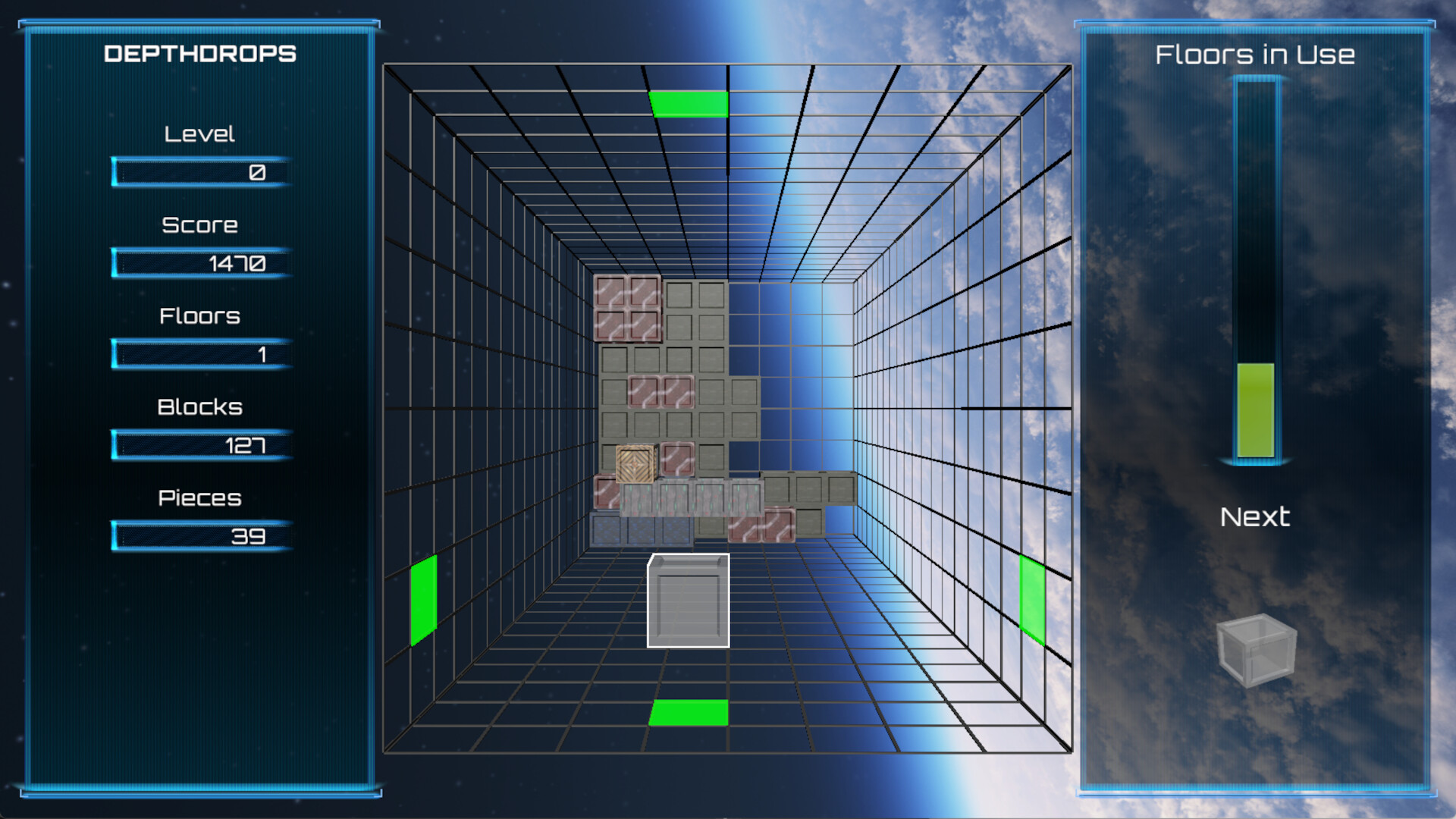 Depthdrops is a 3D puzzle game inspired by the classic BlockOut game for DOS.
