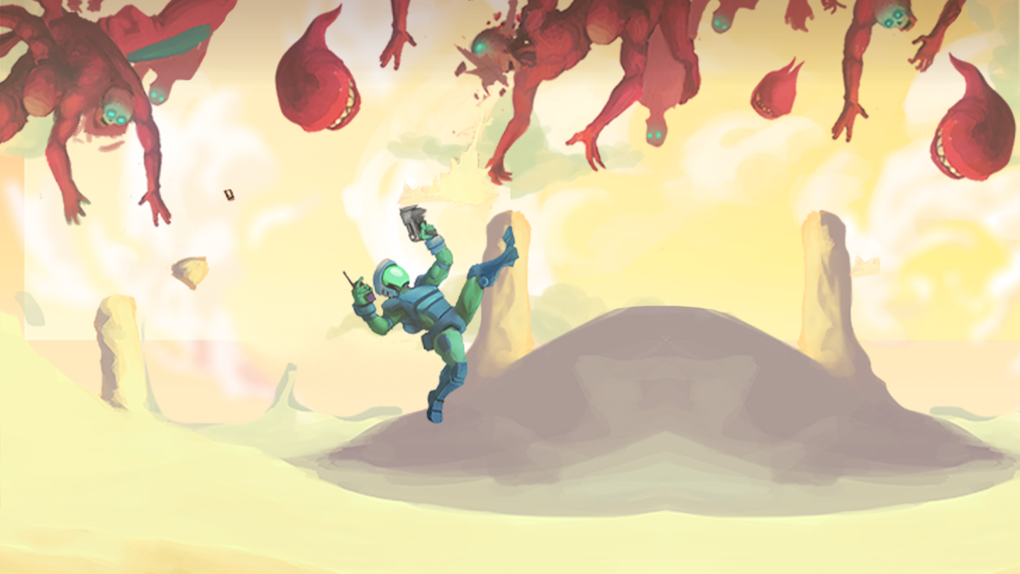 Think fast, kill faster. Blast through shifting alien hellscapes in this roguelite platform-twin stick shooter, switching between Soldier precision and demonic destruction. Survive relentless hordes, brutal bosses, and endless roguelite chaos.