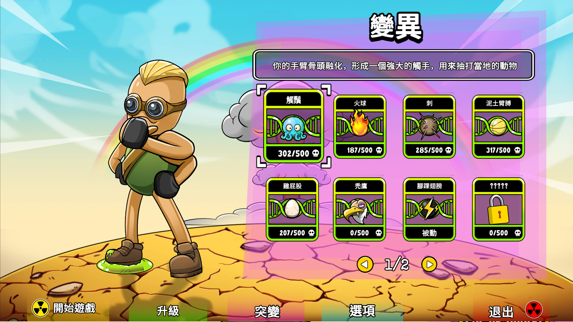 消滅佔滿螢幕的變異野生動物群,吸收它們的放射性內臟,成為荒原中的無敵怪物!
