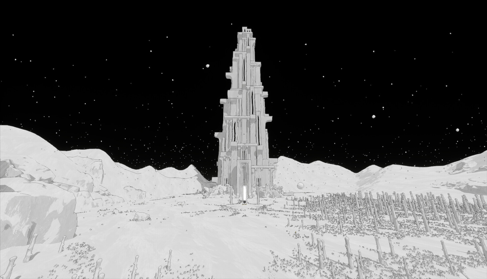Embark on a journey through a white land, dotted with details that hold energy and meaning. As you progress, you will encounter beings and elements that defy the laws of nature and create a dazzling environment full of mysteries to be solved.