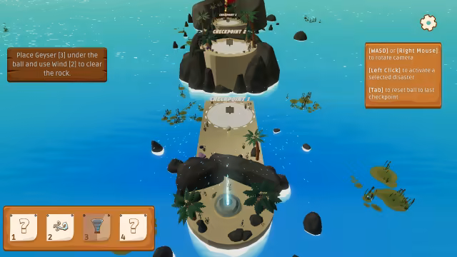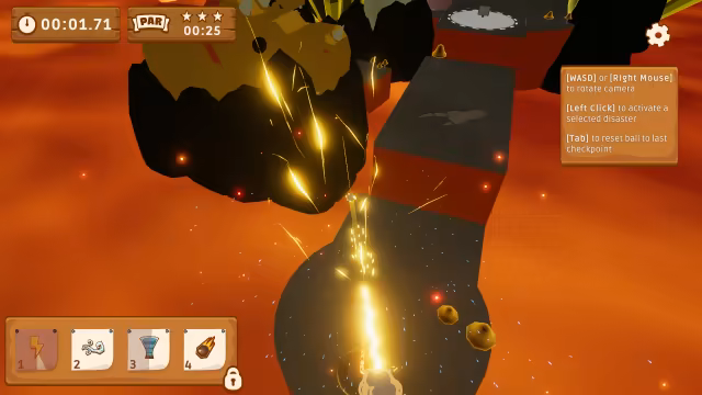 Disaster Golf is a new, fast-paced take on golf that requires you to react on the fly. Experiment with many combinations of natural disasters to navigate the golf ball through wild and diverse courses as fast as you can!