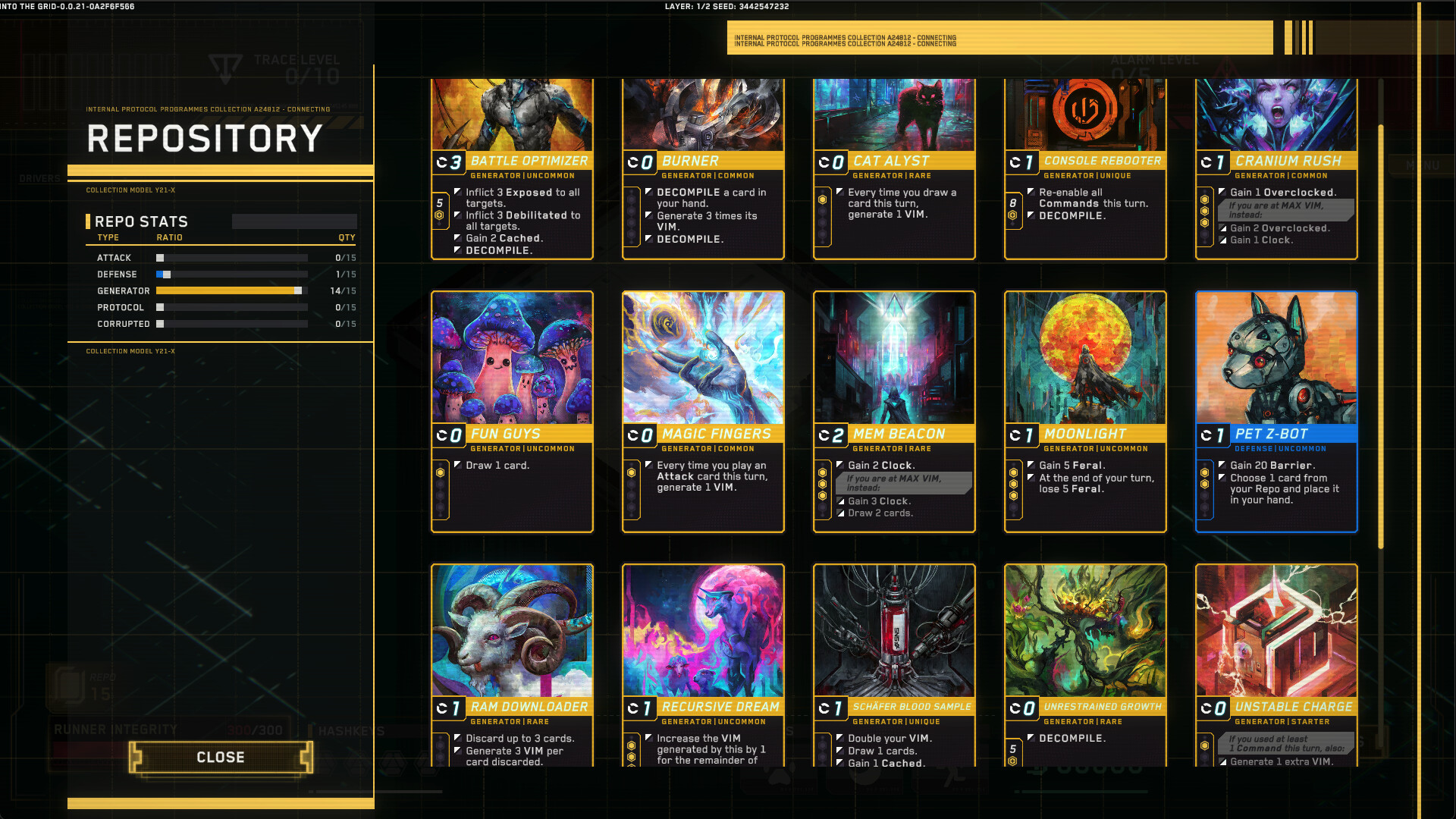 The Repo is your arsenal, and its program cards, your weapons. Get new Programs as you explore, and scrap your least effective ones to upgrade your best ones. Look out for unique combinations and unlock the ultimate power.
