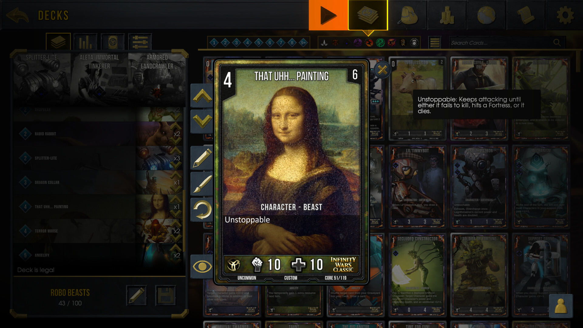 • Custom Card Artwork & Name Editor - Rename, and reskin any card you want to in the game to be literally whatever you want. The game will be personalised in a way you’ve never been able to before, simply by selecting an image from your computer.
