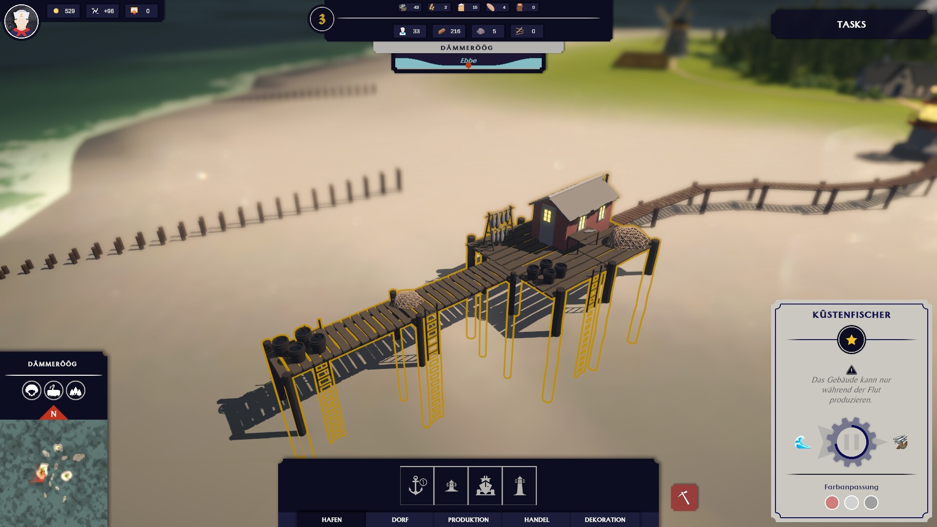 Tides play a major role in Frisia. They wash useful resources onto the beach of your island, which you can use to construct new buildings.