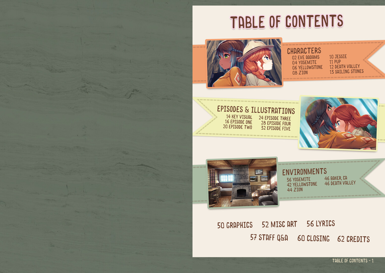 The official companion artbook to the National Park Girls series, featuring developer commentary, concept and bonus art, and full game illustrations and images.