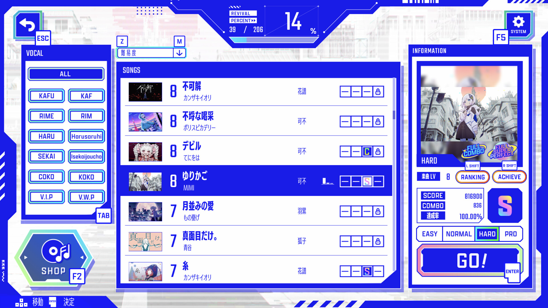 リズムゲームで遊べる楽曲はすべて歌唱曲。